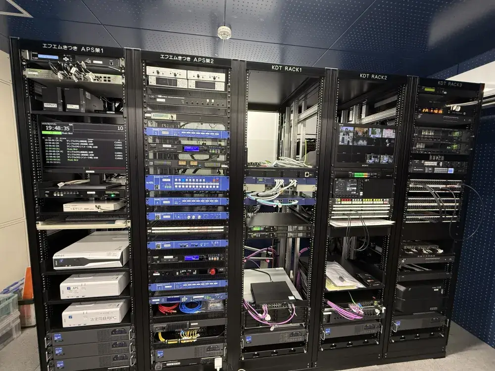 当センターでは、日常的な設備点検やトラブル対応に加え、杵築市役所内のイントラ伝送路設備の保守管理も担っています。停電や災害時にも情報が途絶えないよう体制を整え、映像・通信インフラが確実に機能するよう細やかな管理を実施。